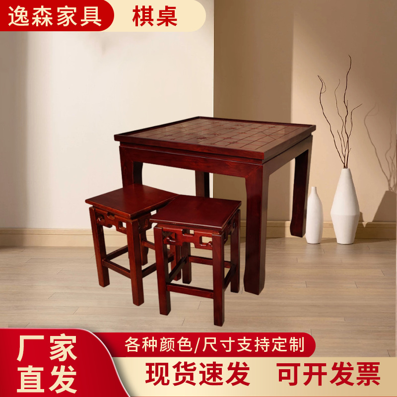 老榆木围棋国学象棋实木五子棋盘桌双面用儿童棋桌多功能椅凳组合