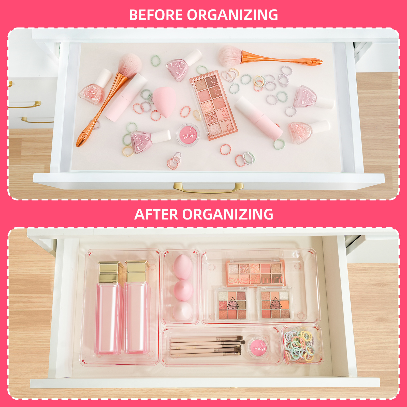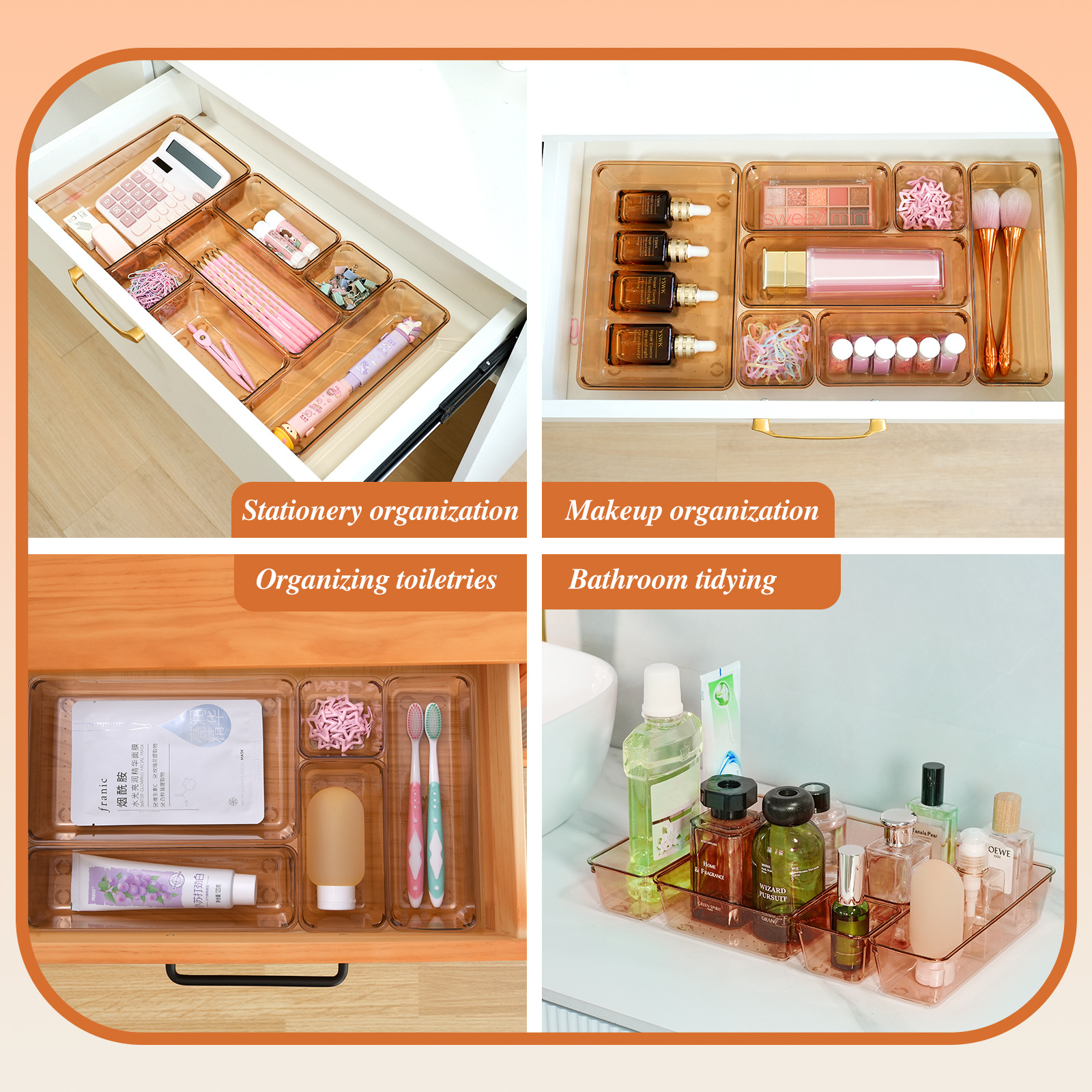 厂家文具厨房化妆品分类收纳跨境专供可堆叠组合抽屉25件套收纳盒