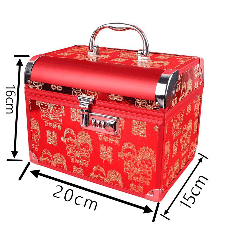婚礼彩礼红色首饰盒双层储物铝合金手提箱大空间密码锁珠宝饰品箱