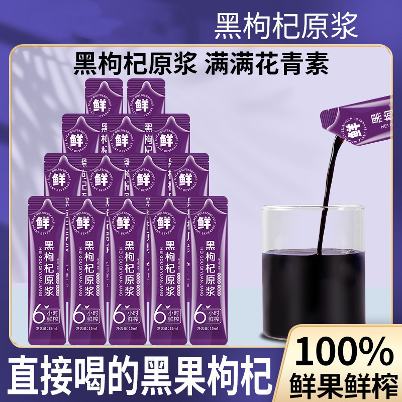 热销青海野生黑枸杞原浆 鲜榨 低温保留花青素 无添加袋装养生饮