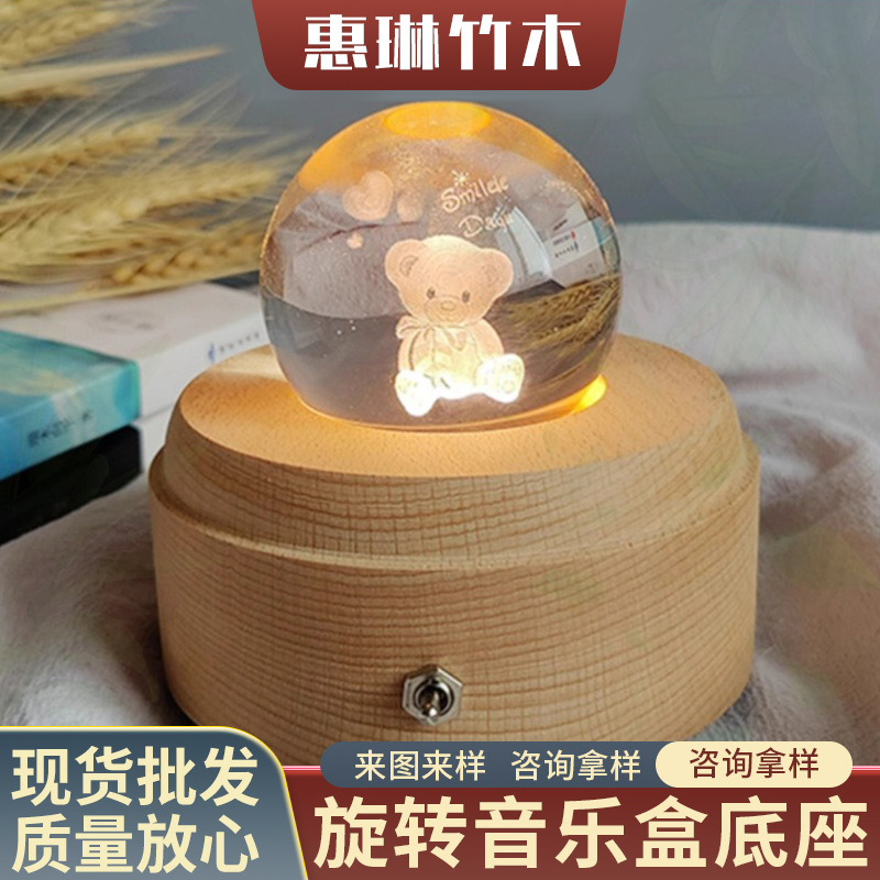 创意简约旋转音乐盒实木卧室摆件DIY发光底座工艺品小众伴手礼品