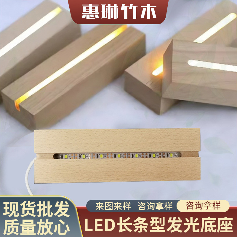 创意长条型发光底座LED小众送人礼品亚克力灯饰DIY实木底座工艺品