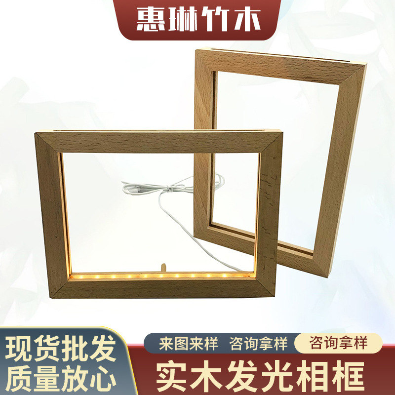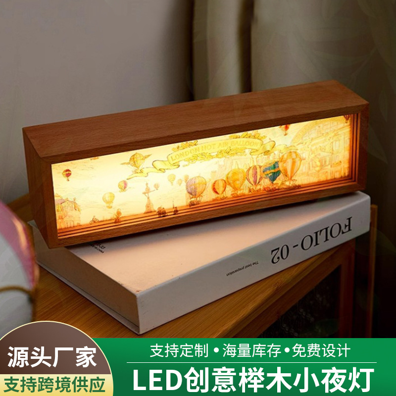 榉木亚克力板灯手办灯创意桌面灯工艺品LED小夜灯礼品画面实木框