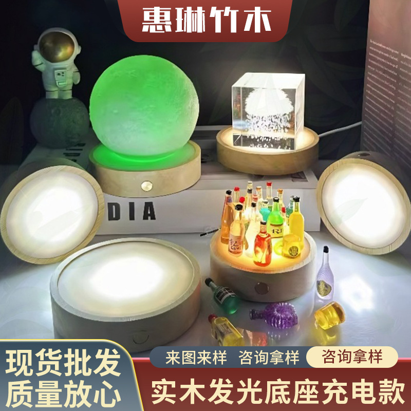 批发圆形实木发光底座扩散版USB充电款DIY木质圆形LED小夜灯底座