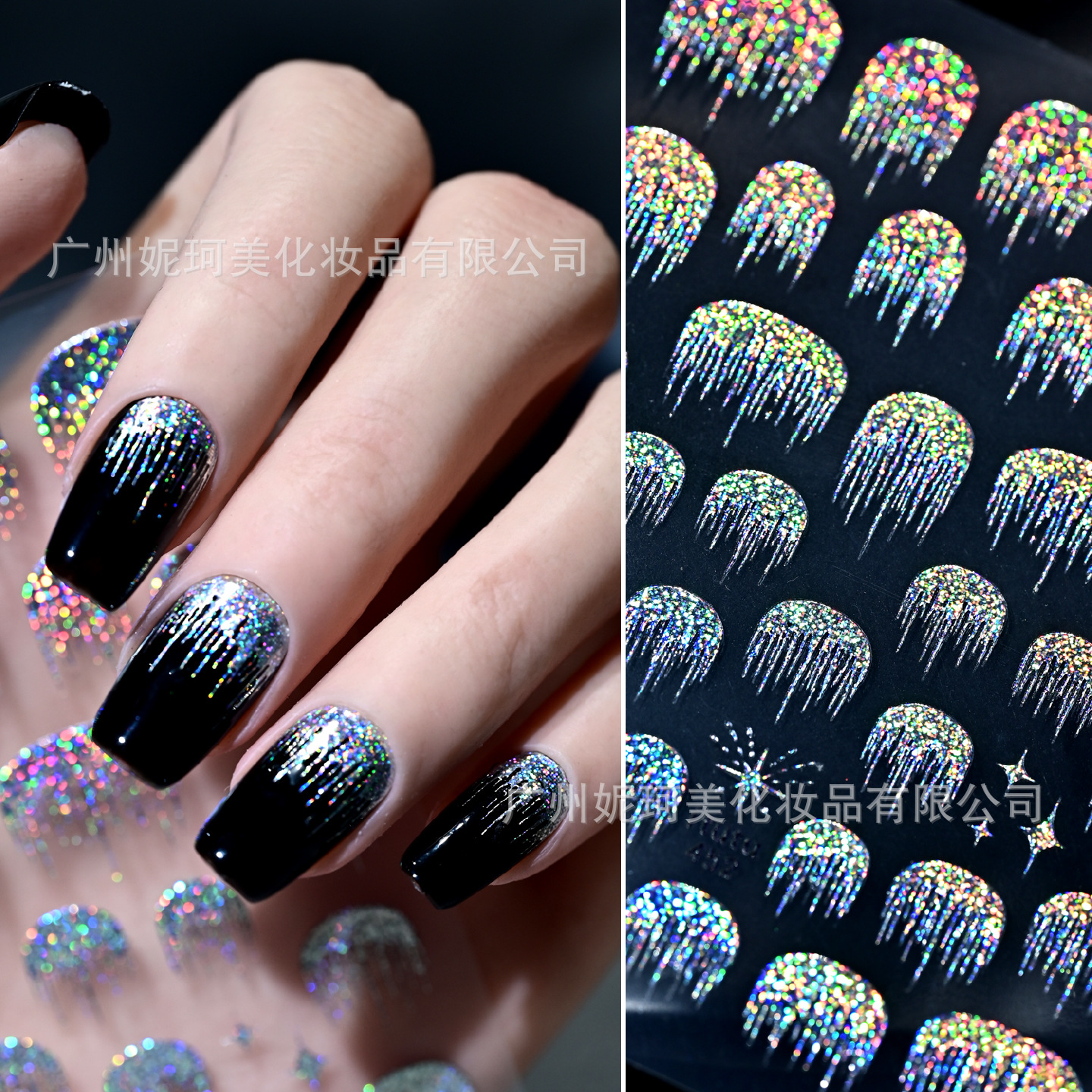 反法式流光炫彩美甲贴纸网红浪漫镭射指尖小图案背胶贴纸itutu454
