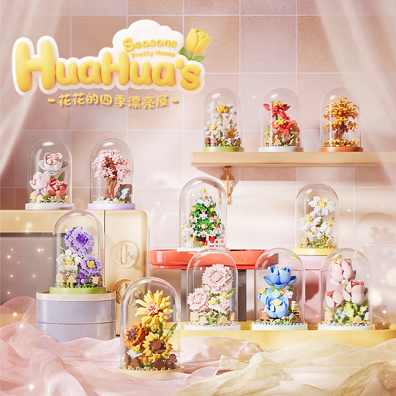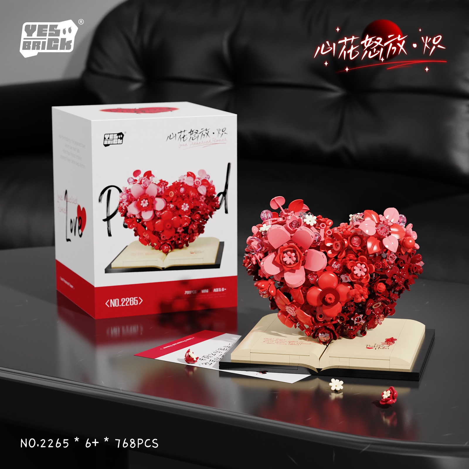 跨境心花怒放系列积木花永生爱心花立体画拼装玩具桌面摆件ins风