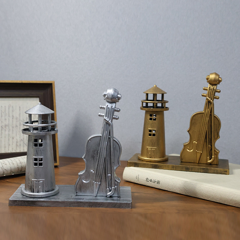 欧式复古灯塔小提琴摆件办公室家居灯塔摆件生日礼物装饰摆件