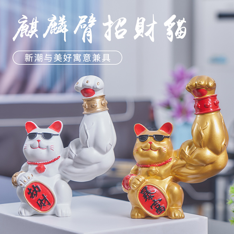 创意劫财猫麒麟臂手臂招财暴富开业礼品店铺招财猫摆件送礼批发