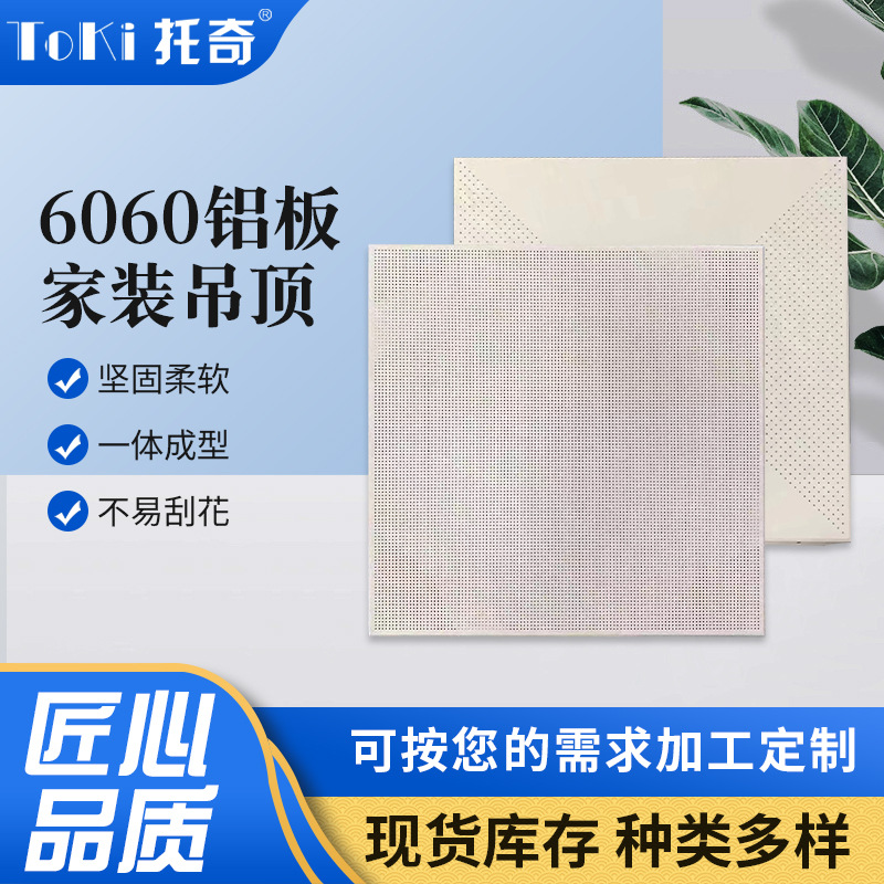 原厂供货集成吊顶工装板600*600铝板家装吊顶 冲孔对角天花板批发
