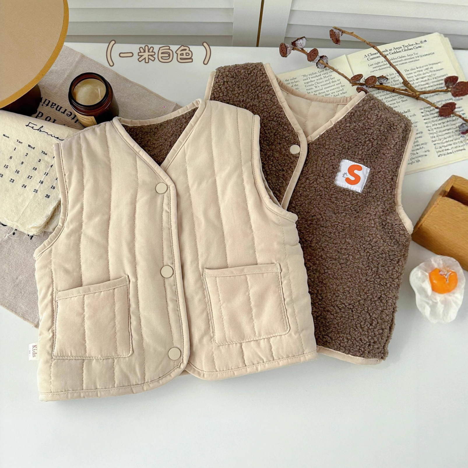 新款儿童马甲羊羔绒男女童双面保暖马甲宝宝加厚背心加绒内搭外穿