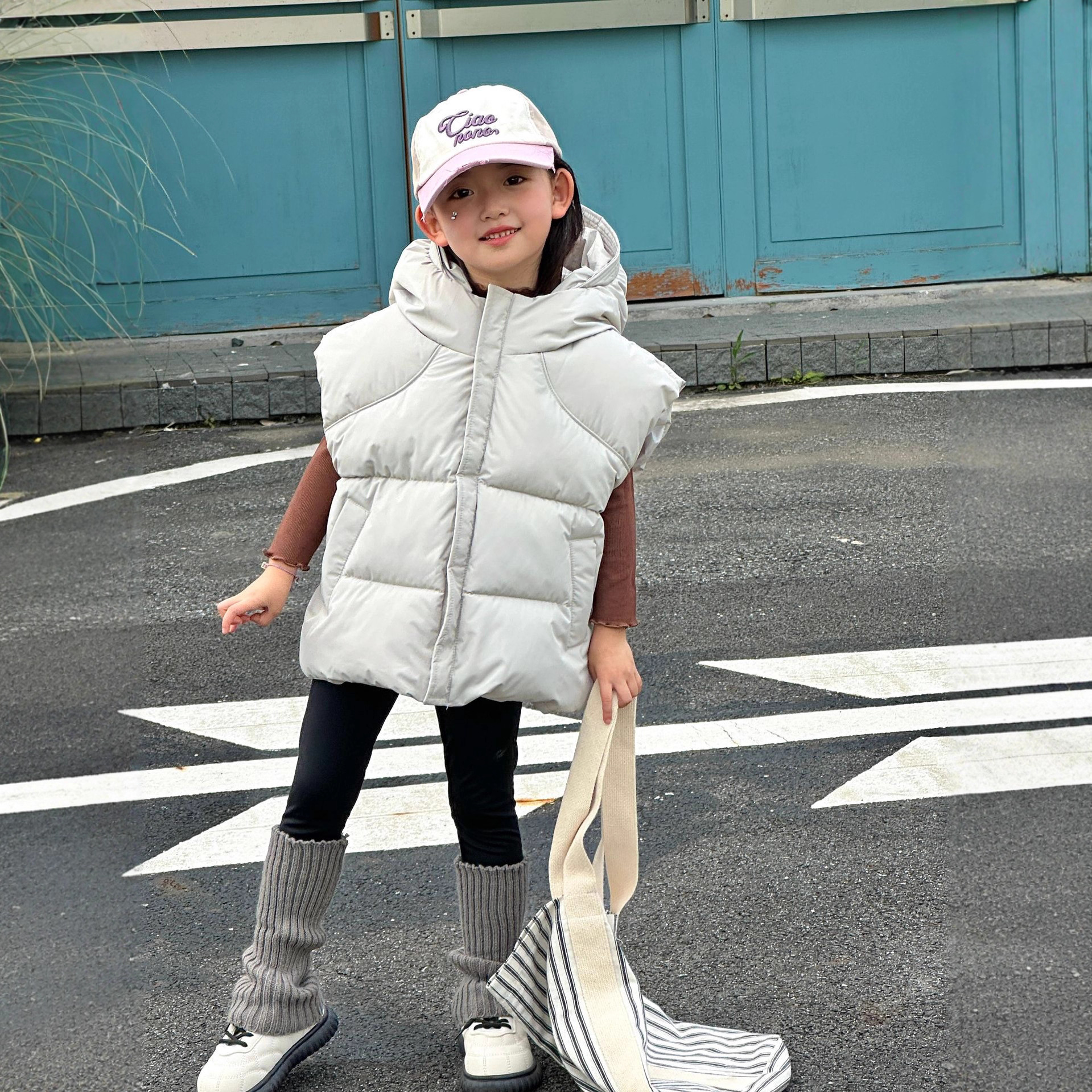 新款女童棉服马甲秋冬洋气中大童儿童连帽夹棉加厚背心外穿坎肩韩