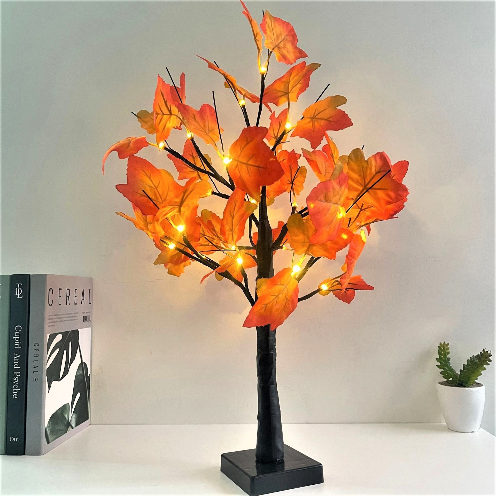 新款万圣节白桦树装饰灯创意家居场景布置枫叶蝙蝠南瓜小夜灯彩灯