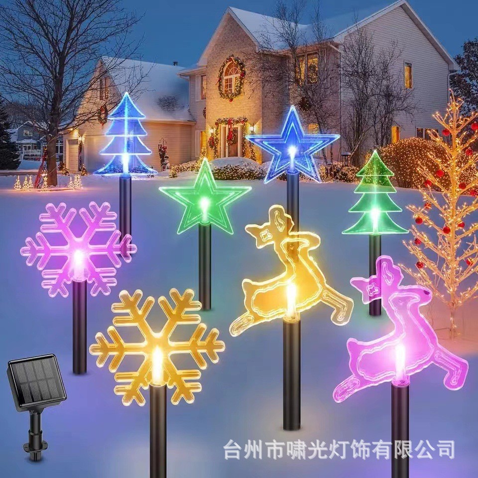 跨境太阳能地插雪花圣诞节树装饰灯户外防水花园庭院LED景观灯