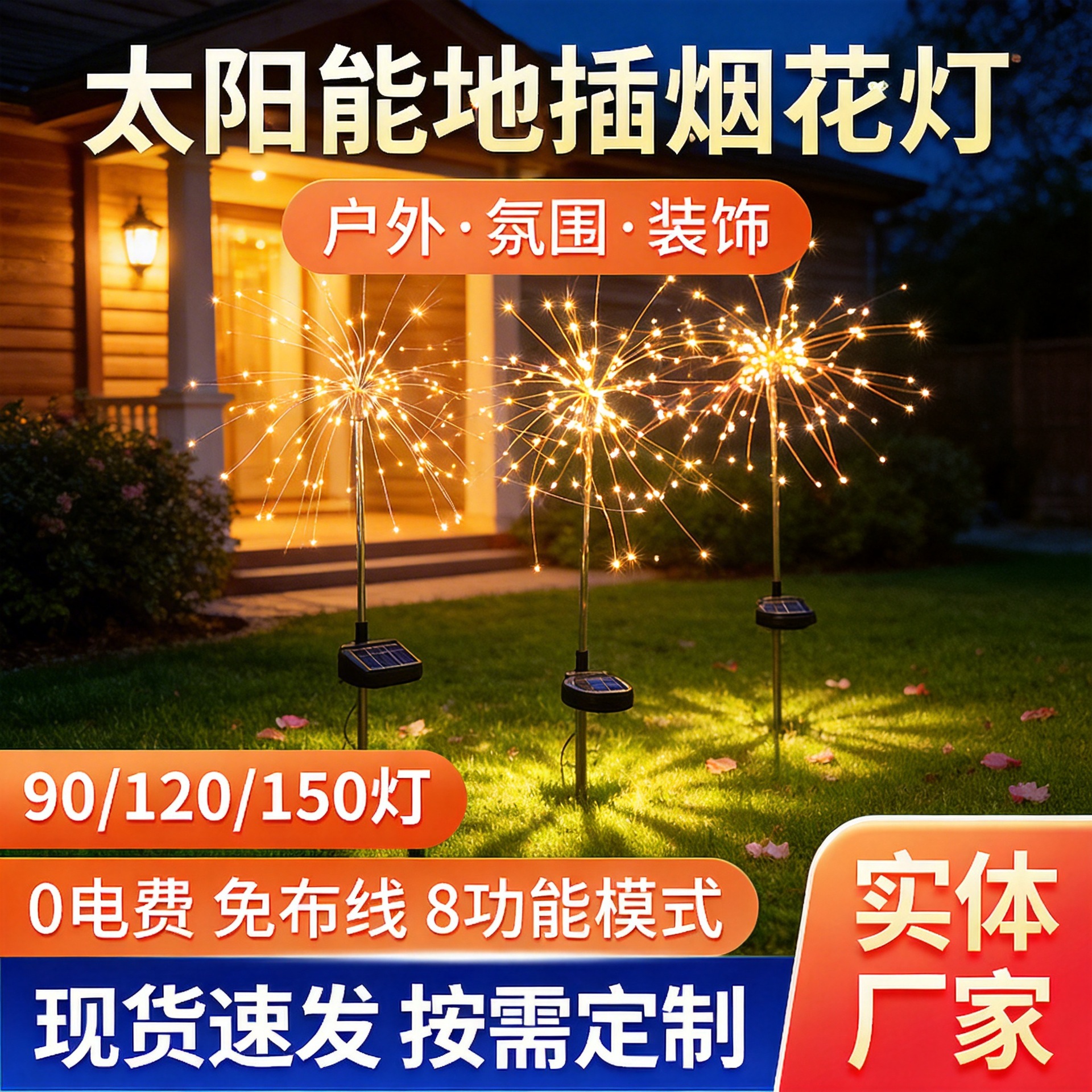 led太阳能地插烟花灯铜线灯圣诞节爆炸灯室内户外装饰彩灯灯串挂