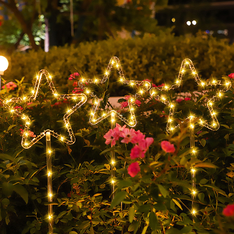 ins太阳能地插铜丝灯户外露营场景布置庭院装饰五角星雪花圣诞节