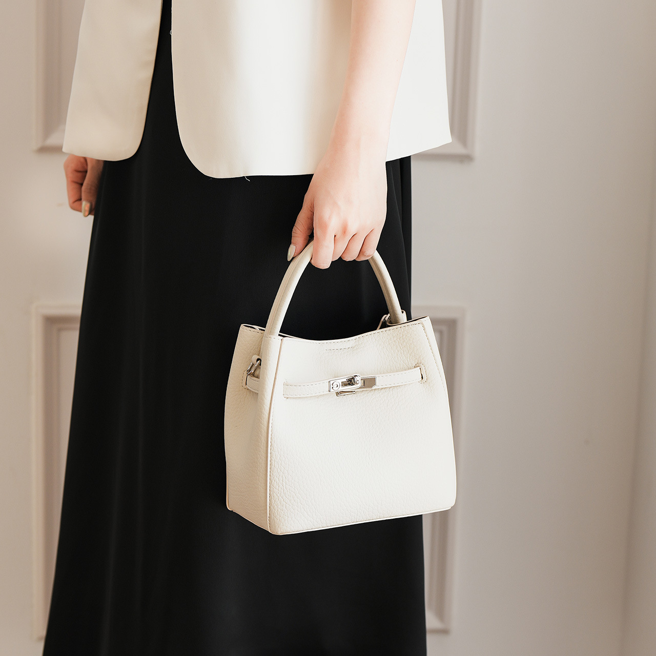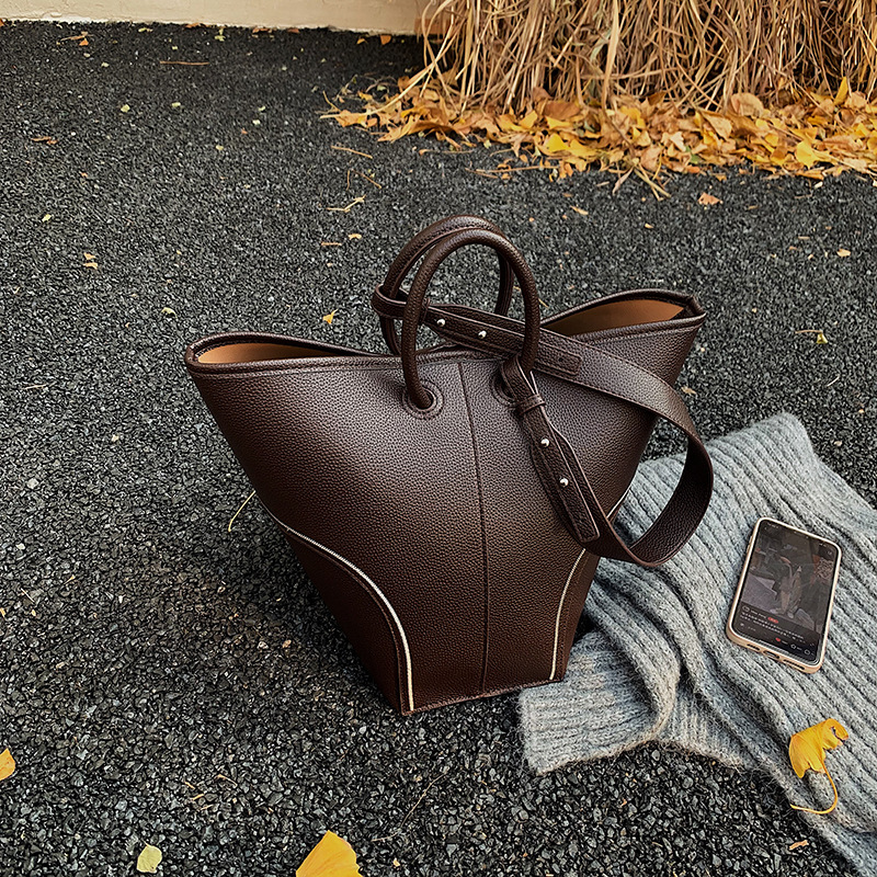 秋冬新款时尚通勤手提包小众高级感大容量水桶包单肩斜挎托特包