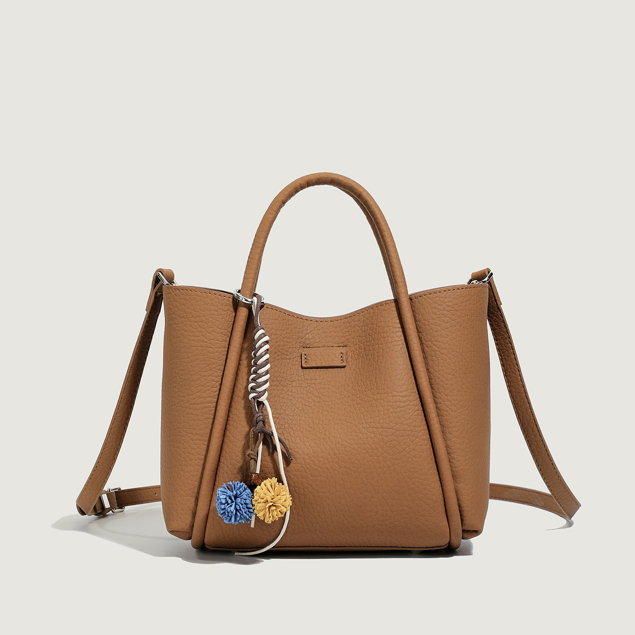 小众百搭纯色荔枝纹水桶包包女2025新款复古休闲百搭手提包斜挎包
