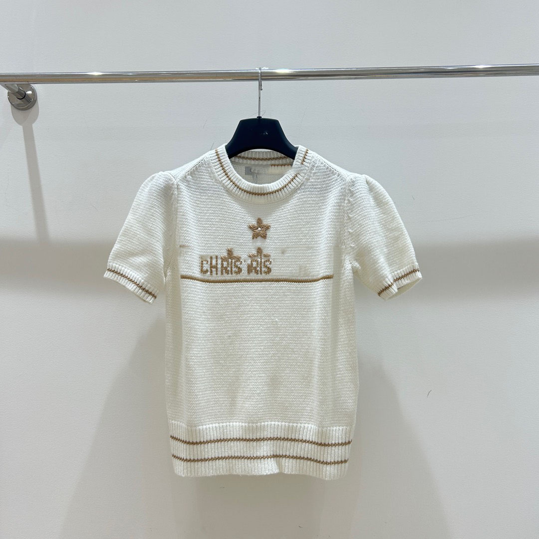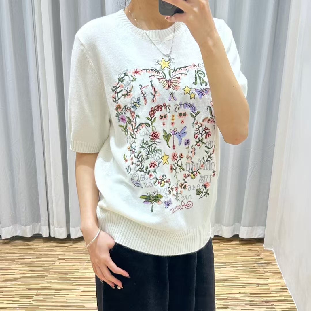 南油25早春五角星字母刺绣羊毛修身显瘦圆领针织短袖女款早春新品