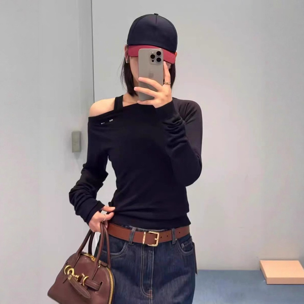 法式一字肩长袖春秋洋气减龄设计感气质高级感上衣女现货学院风