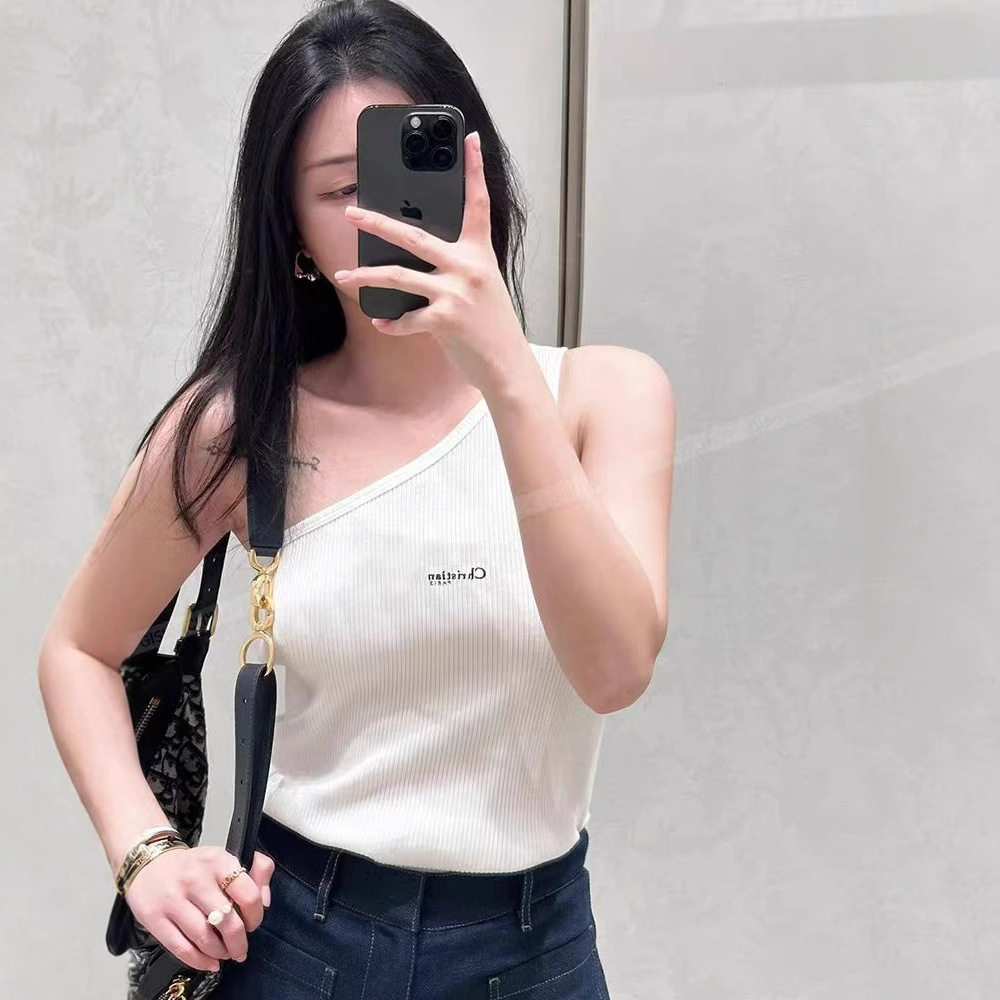 无袖打底D家2025春夏新款女士白色黑色简约基础logo刺绣单肩背心