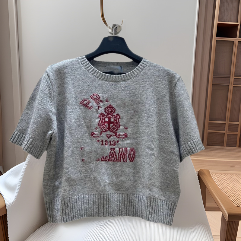 南油高品质P家25新款经典字母logo羊绒提花休闲百搭短袖针织毛衣