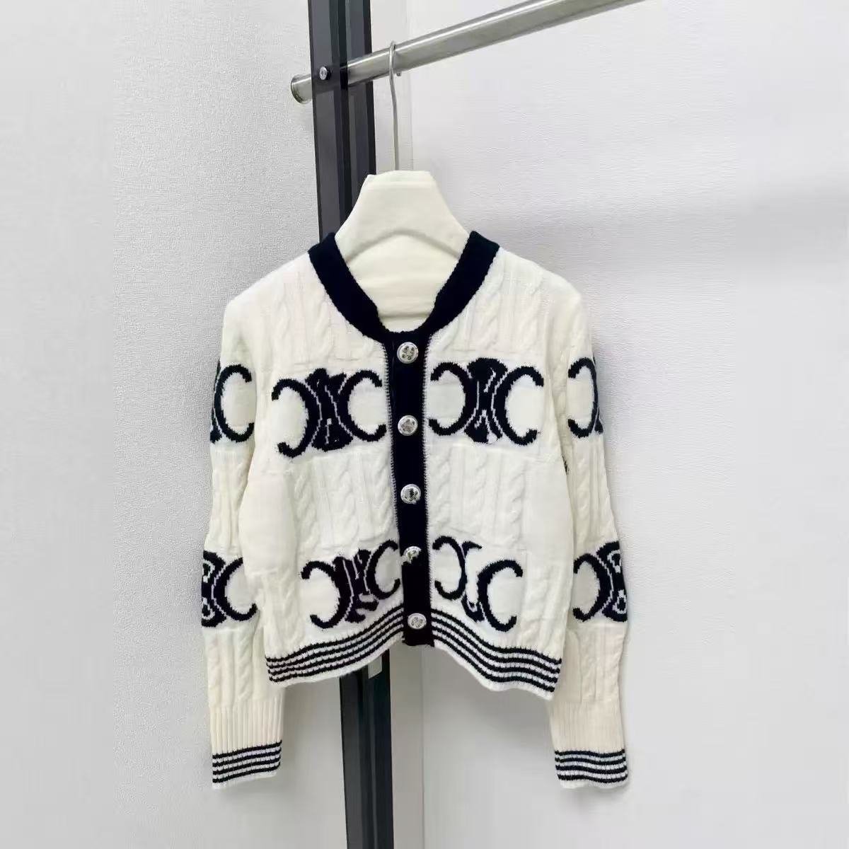 深圳南油CE家25年秋冬新款logo提花撞色针织开衫毛衣外套女