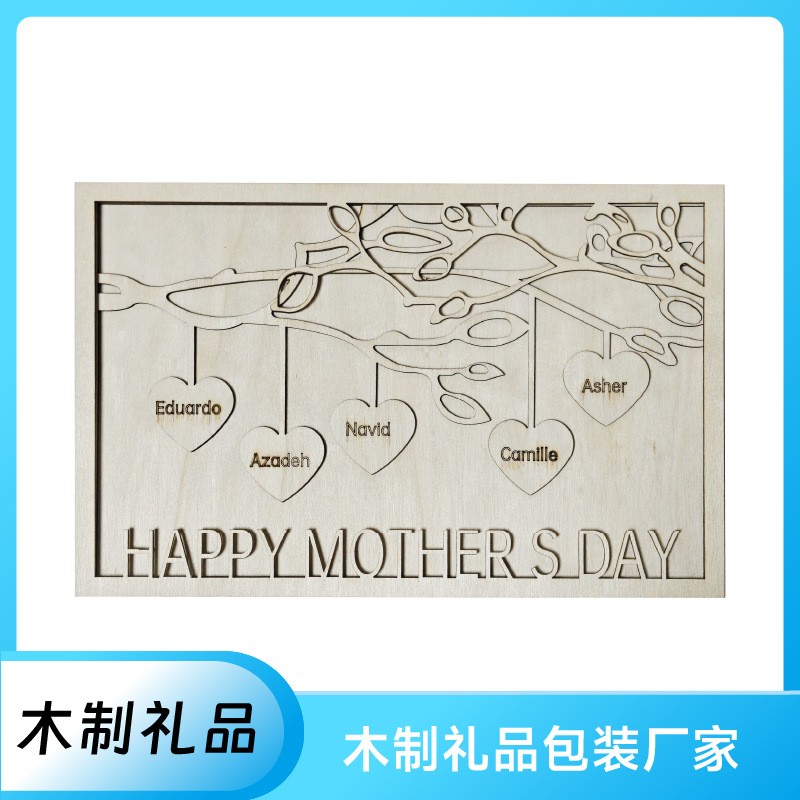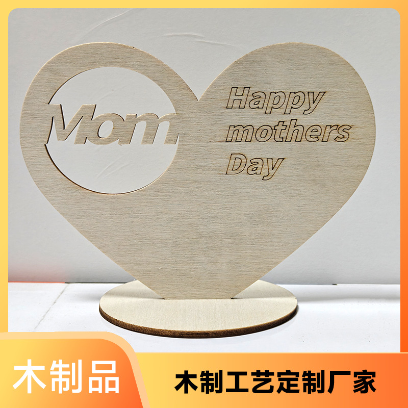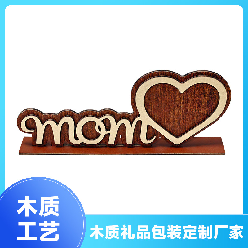 新款木质工艺品母亲节爱心镂空字母激光切割木片工艺礼品小摆件