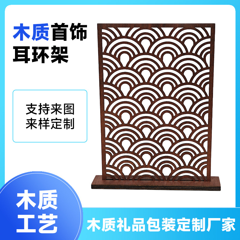 木制雕花镂空耳环架新中式耳环首饰收纳架桌面木质摆件