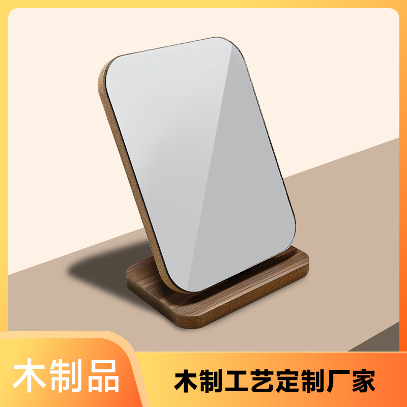 新款简约木质化妆镜旋转桌面化妆镜子台式学生宿舍折叠梳妆镜便携