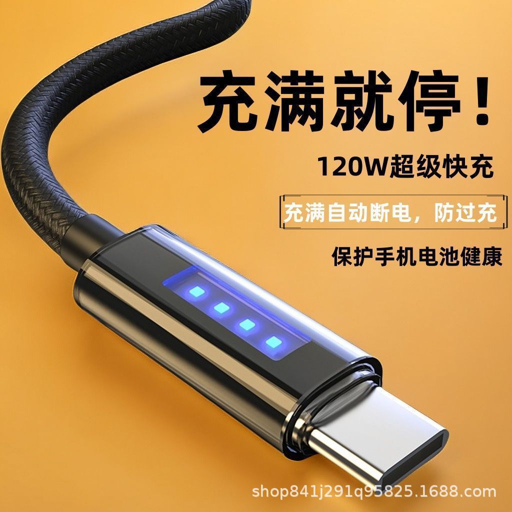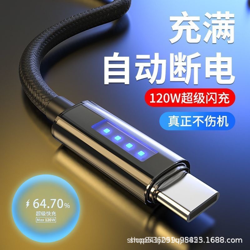 源头工厂批发透明数显数据线Typec超级快充6A闪购手机充电线带灯