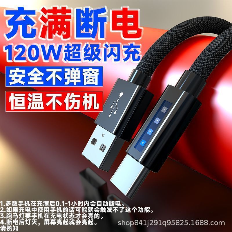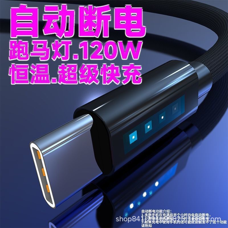 充满自动灭灯数据线typec快充线适用华为小米荣耀跑马灯智能充电