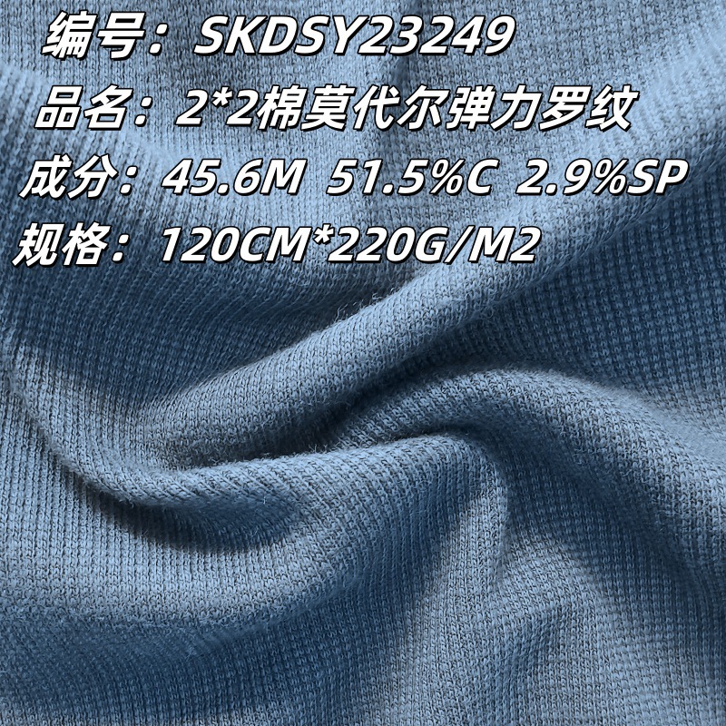 现货莫代尔弹力罗纹2*2坑条面料布春夏打底家居服细纹螺纹布