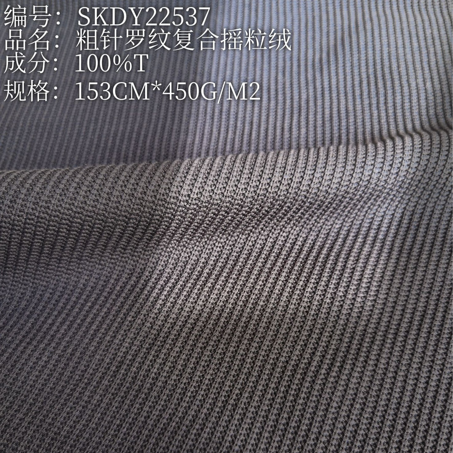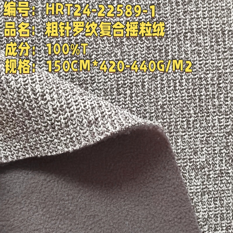 现货440g粗针罗纹复合摇粒绒加厚针织外套面料秋冬抓绒休闲针织布