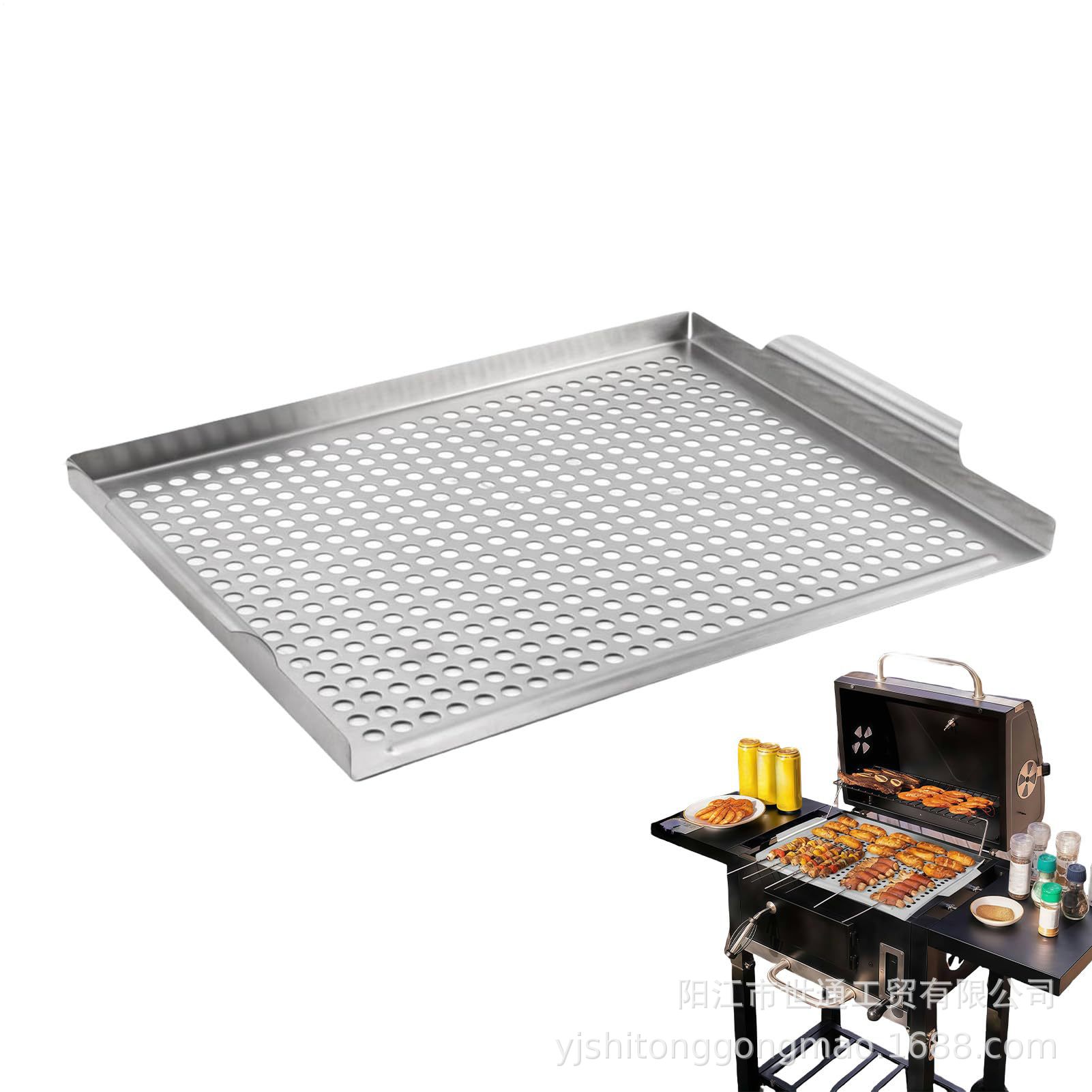 新款不锈钢烤肉盘 方形烧烤网盘用具 户外BBQ多用煎盘漏孔烤盘