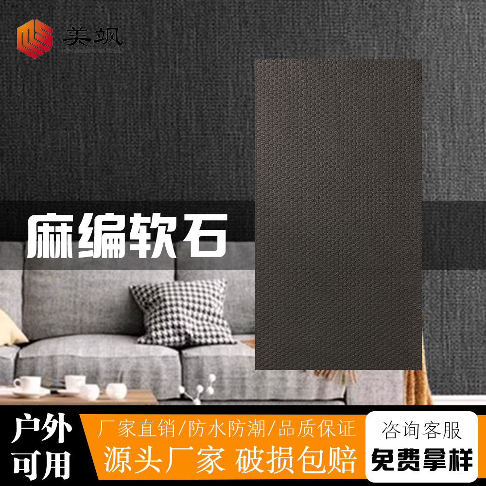 新款竹编软石板人字编软瓷柔性石材编织纹人造石内外墙装饰板材