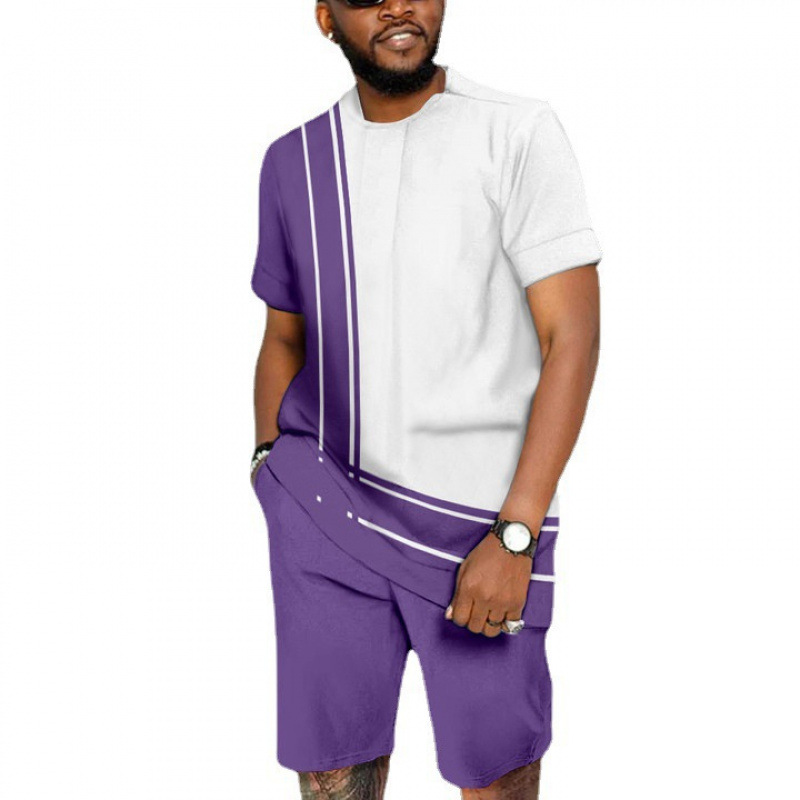 亚马逊速卖通短袖短裤男士3D印花时尚休闲民族风T恤沙滩裤套装