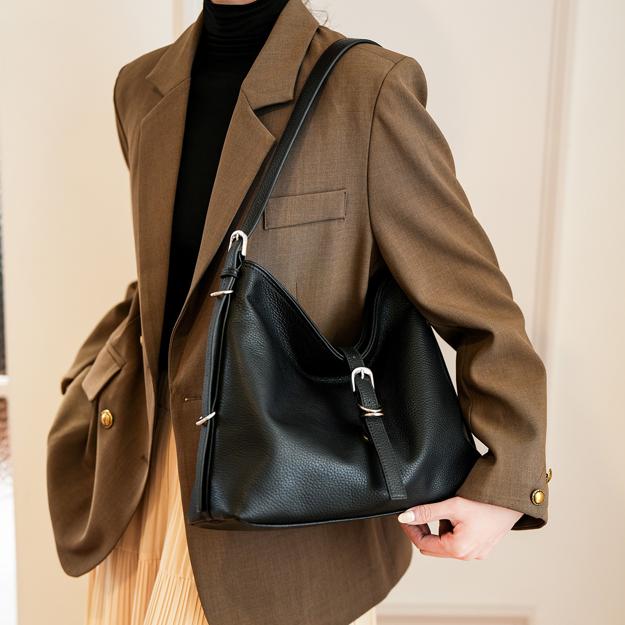 跨境女包2026新款气质时尚简约水桶包洋气通勤大容量质感单肩包