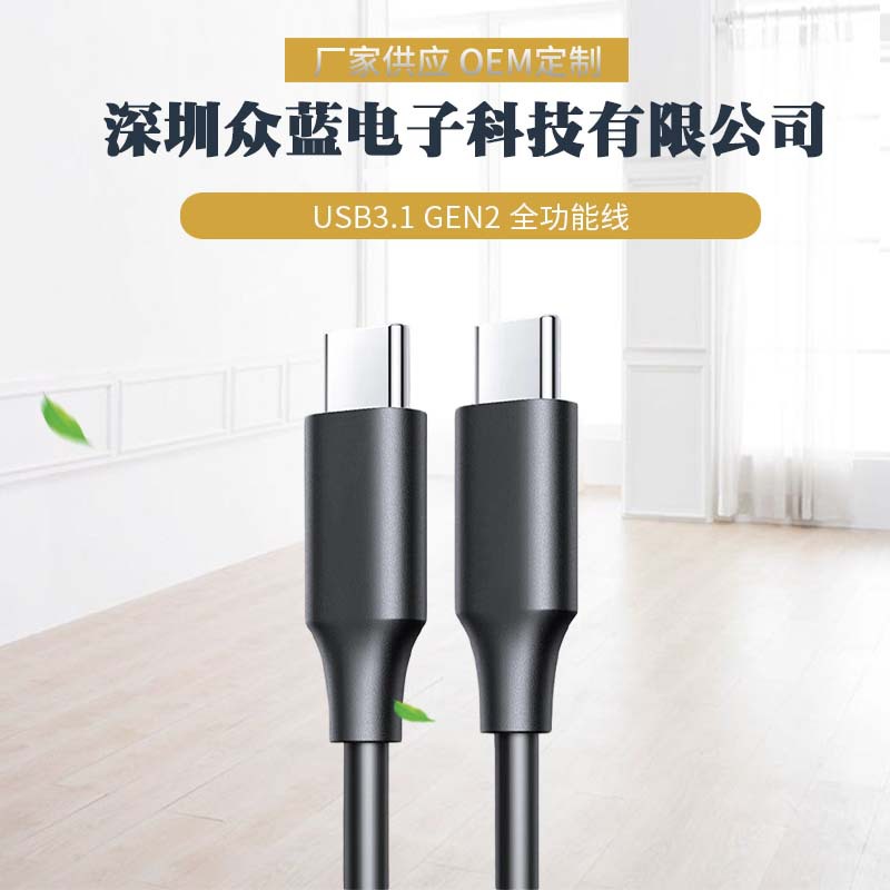 USB3.1GEN2全功能移动硬盘线安卓手机平板电脑显示器PD60W快充线