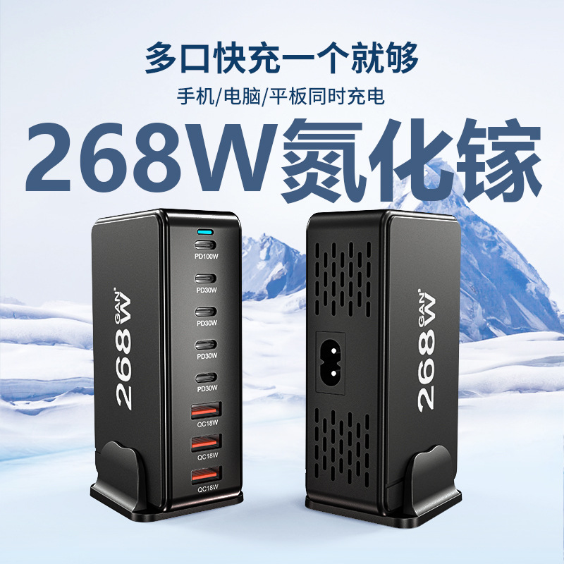 268W氮化镓PD充电器 氮化镓100W充电器PD100W多功能8口桌面适配器