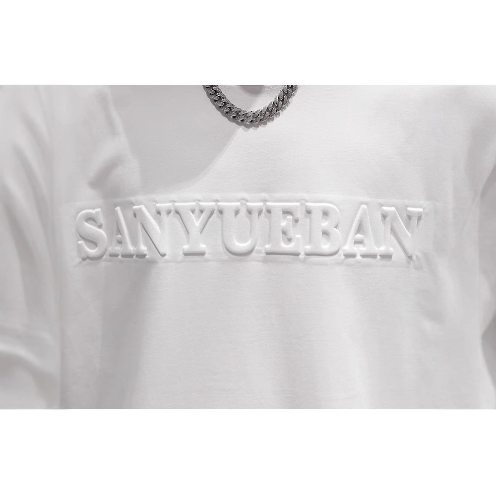 美式纯白色钢印3D字母凹凸短袖T恤男士新款宽松男生半袖潮牌上衣