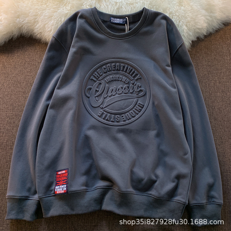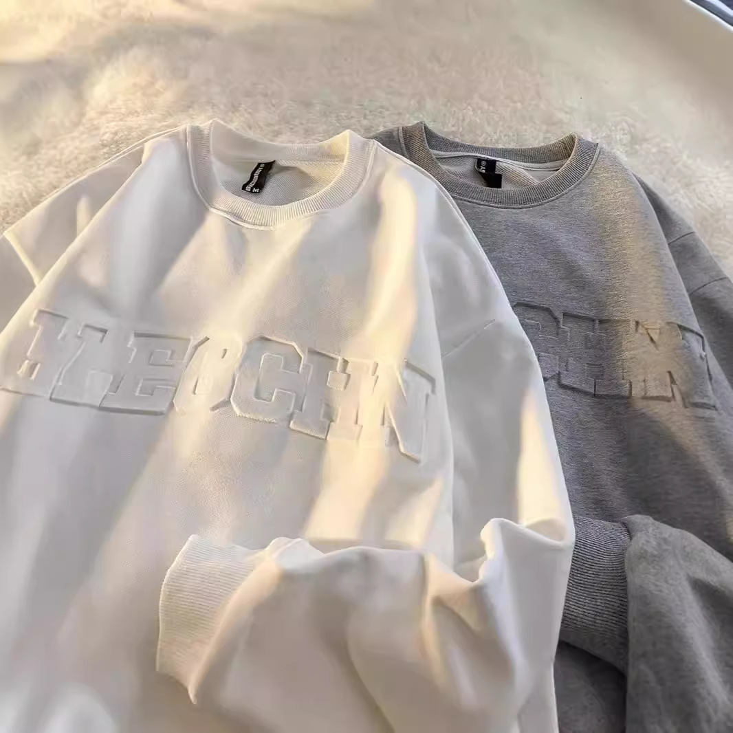 立体字母凹凸圆领卫衣时尚潮牌春秋男女情侣秋冬加绒百搭打底上衣
