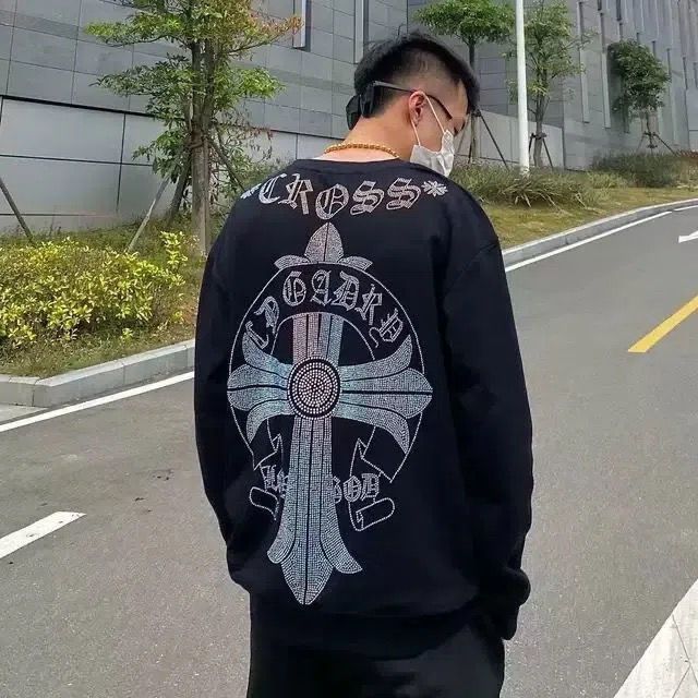 欧货重工烫钻长袖卫衣韩版宽松休闲百搭上衣秋冬潮牌圆领打底衫