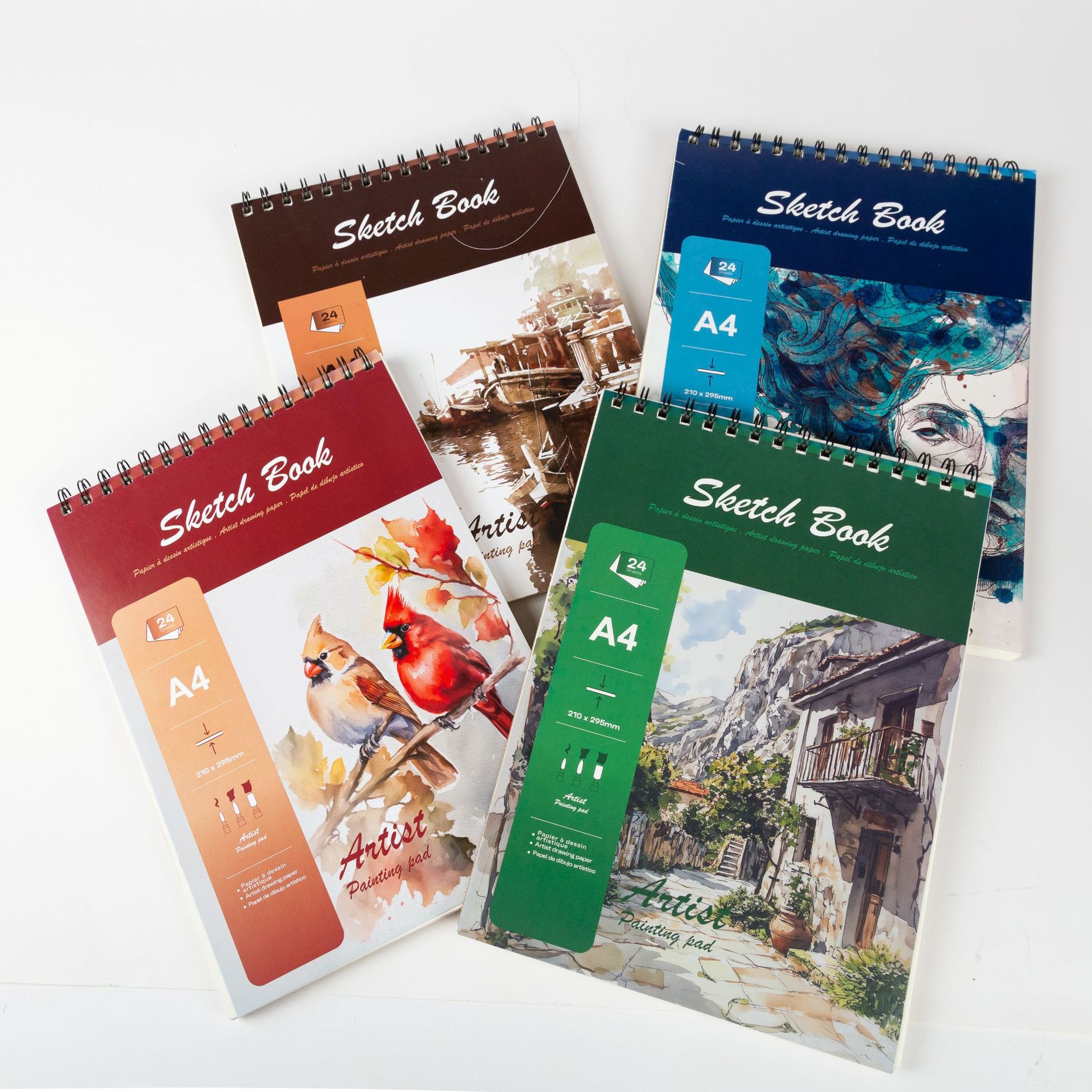外贸加厚纸张不透色上下翻线圈空白画画本学生素描本批发水彩画册
