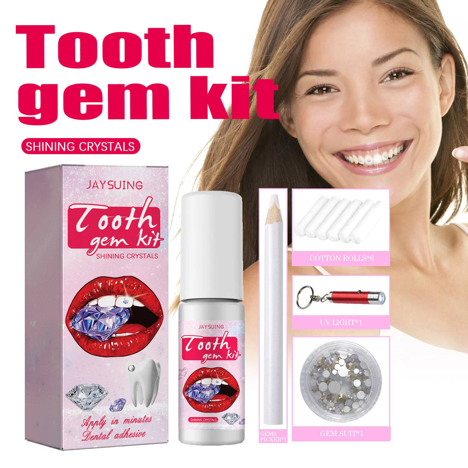 JAYSUING 牙齿宝石套件 饰品易拆卸易安装水晶牙钻牙饰闪亮套件