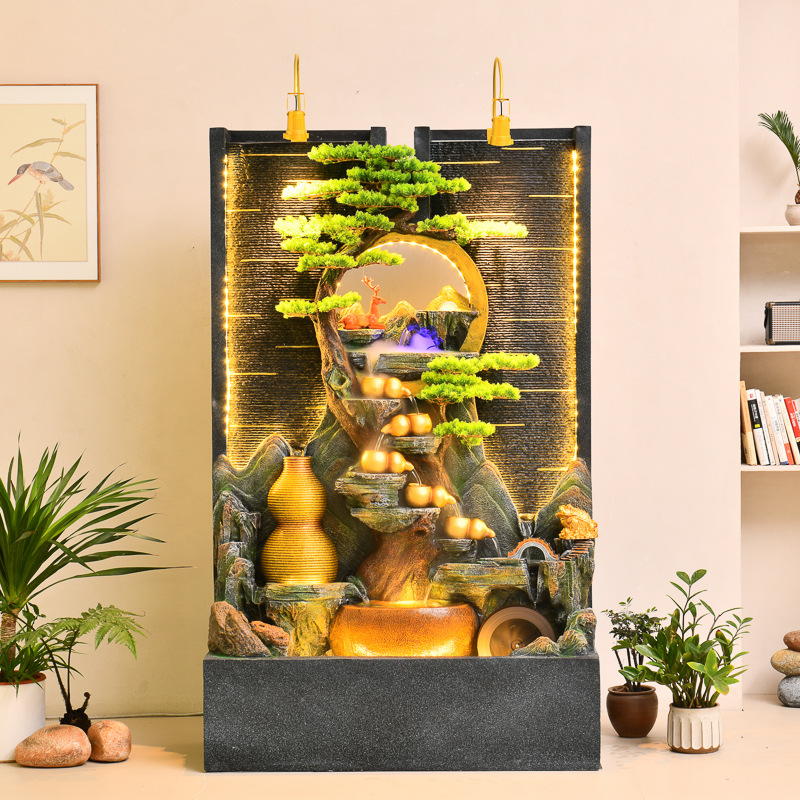 水幕墙落地假山循环水系摆件客厅办公室流水喷泉风水轮开业礼物