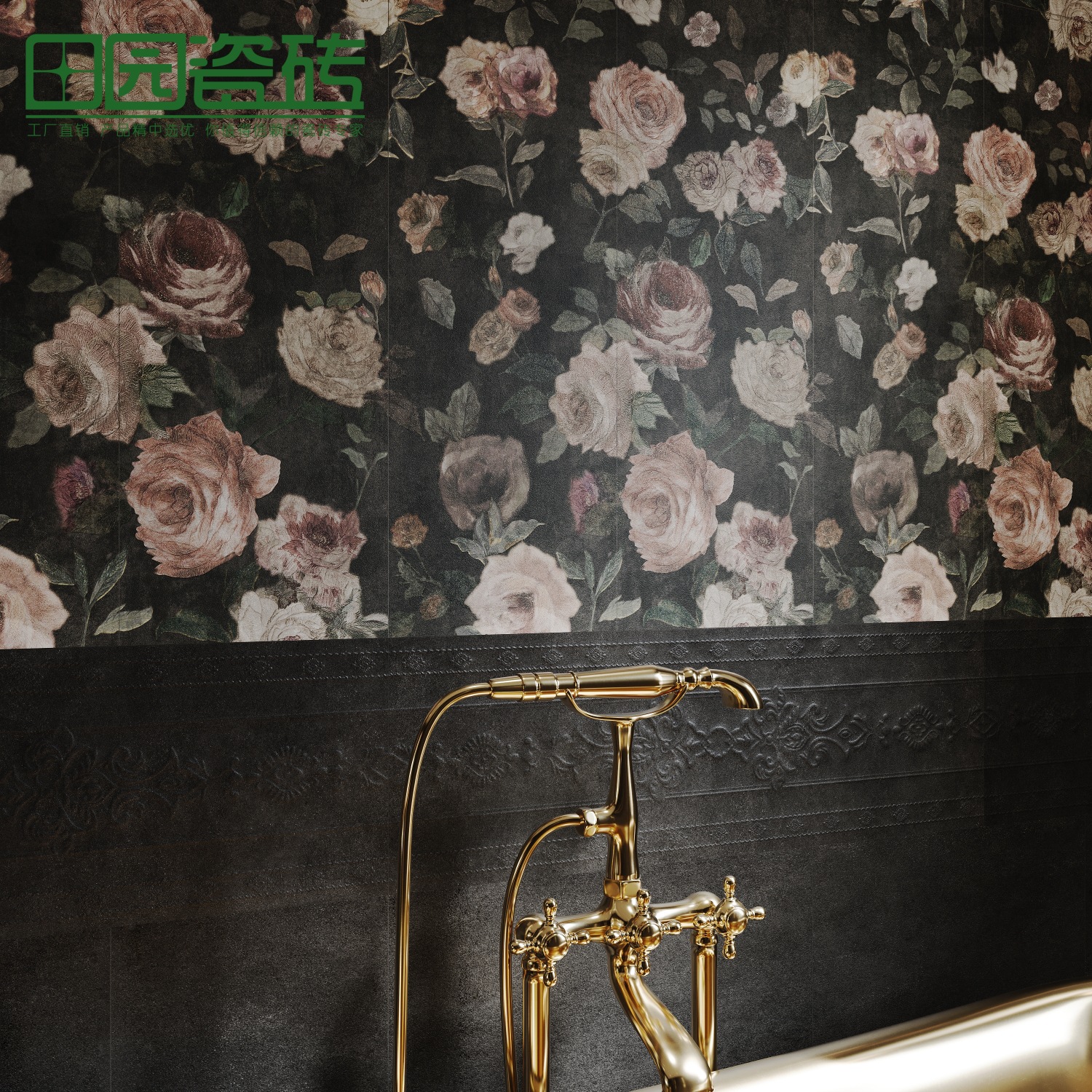 法式卫生间浴室墙裙瓷砖 全瓷黑色酒红墙面砖仿古砖300x900