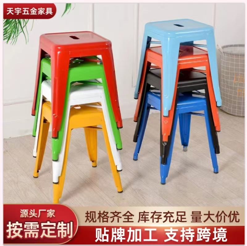 定制铁皮凳家用餐厅可叠放金属凳创意咖啡厅吧台凳简约铁皮方凳子