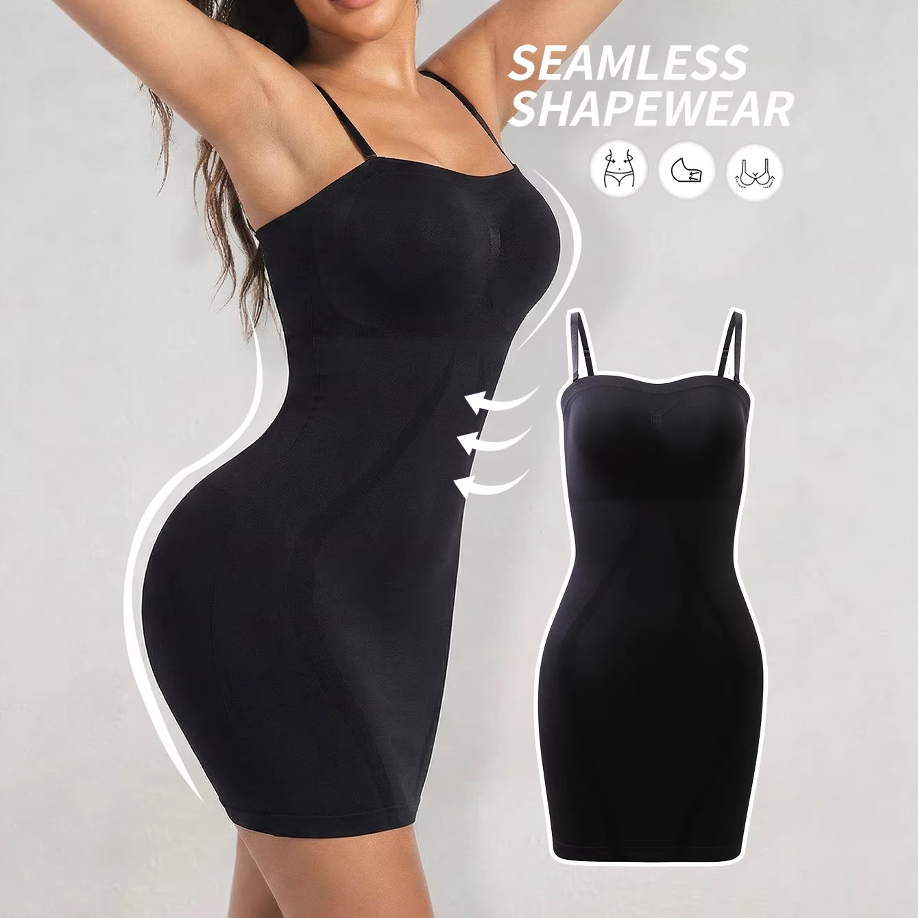 跨境欧美热销无缝塑身束身吊带性感打底收腰包臀一体式大码连衣裙