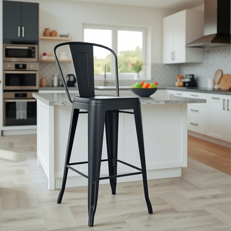 定制简约铁皮椅家用铁艺高脚方凳子复古酒吧吧台椅跨境金属餐厅椅