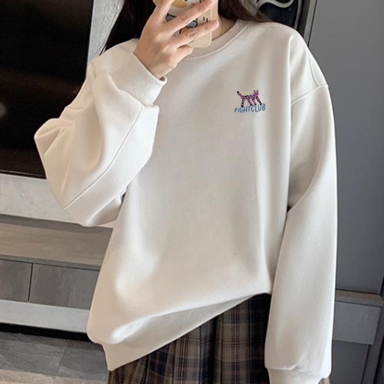 新款跨境卡通印花卫衣女秋冬抓绒长袖宽松休闲慵懒百搭内搭上衣